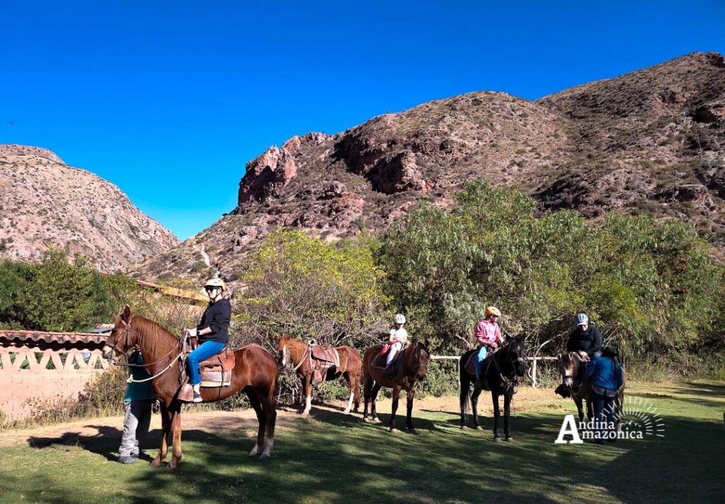 Once back in the depths of the Sacred Valley, touching solid ground, we will drive you to another point in the Sacred Valley, a local ranch with very friendly and affectionate people. They will welcome us with open arms and share with us a magnificent lunch with a taste of home, organic ingredients, and they will delight us with their family history and show us their space. After lunch, from this beautiful ranch, you will begin a more peaceful and beautiful activity in the company of our equine friends, contemplating all the beauty of the Sacred Valley, taking you to visit the Maras salt flats, a unique place in the world, embedded in the mountain. After this activity, we will take you back to your hotel for your enjoyment and rest, as another day of hiking awaits you the next day.