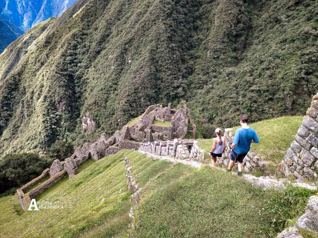 From the train station, we will travel for an average of 1 hour and 20 minutes until we reach kilometer 104, a sector called Chachabamba at 2,000 meters above sea level (6,560 ft), where the road to Machu Picchu begins. On the train route, you will be able to appreciate the incredible fields cultivated by hand by the community members of the entire area, mountains and snow-capped peaks that rise above 5,000 meters or 16,000 feet, and a diversity of archaeological sites along the Urubamba River, etc. Once in Chachabamba, you and your professional Andina Amazonica guide will begin the hike by first visiting the archaeological site, an administrative and economic center with buildings that show enclosures, resting places, ceremonial areas, terraces, irrigation canals, etc. After a brief explanation, we will continue the hike for an average of 3 to 4 hours (depending on the pace of the traveler) until we reach the beautiful Wiñaywayna (a Quechua word meaning “forever young”), after refreshing ourselves in the clean, pure waters of the waterfall, we will continue to the archaeological site of the same name at 2,600 meters above sea level. This building is located on the mountain and offers a breathtaking view of the mountain range that crosses the eastern Andes, as well as the sacred Urubamba River.